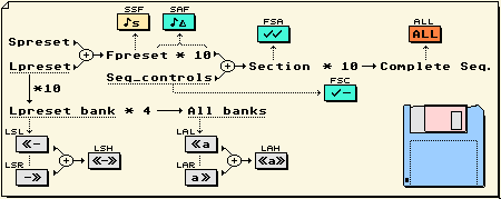 With the F1 to F10 buttons, one chooses which Fpreset from a sequence section will